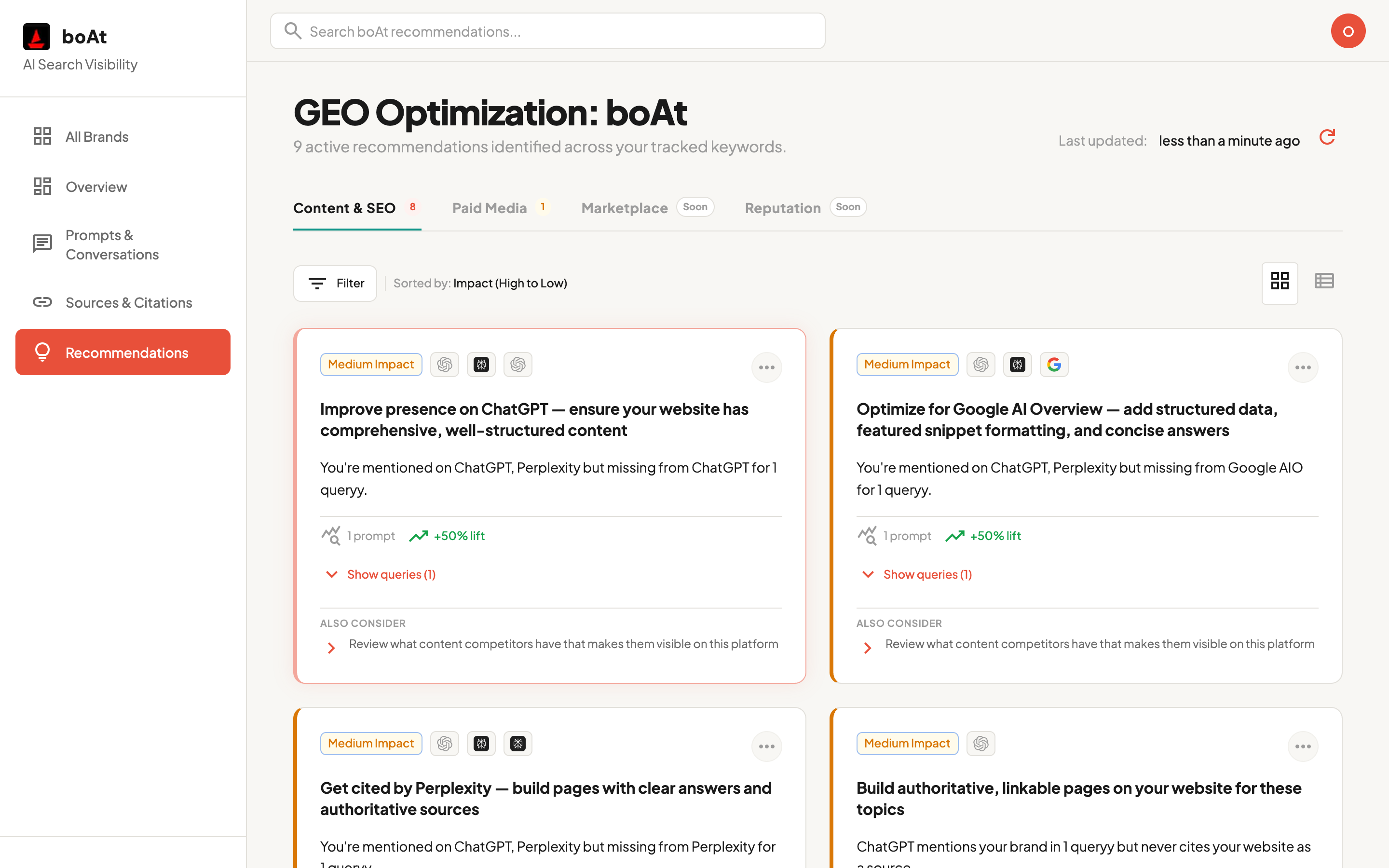 We continuously monitor ChatGPT, Perplexity, and Google AIO to find the exact questions your ideal buyers are typing in — from product comparisons to vendor shortlists. You see every query that matters for your pipeline.